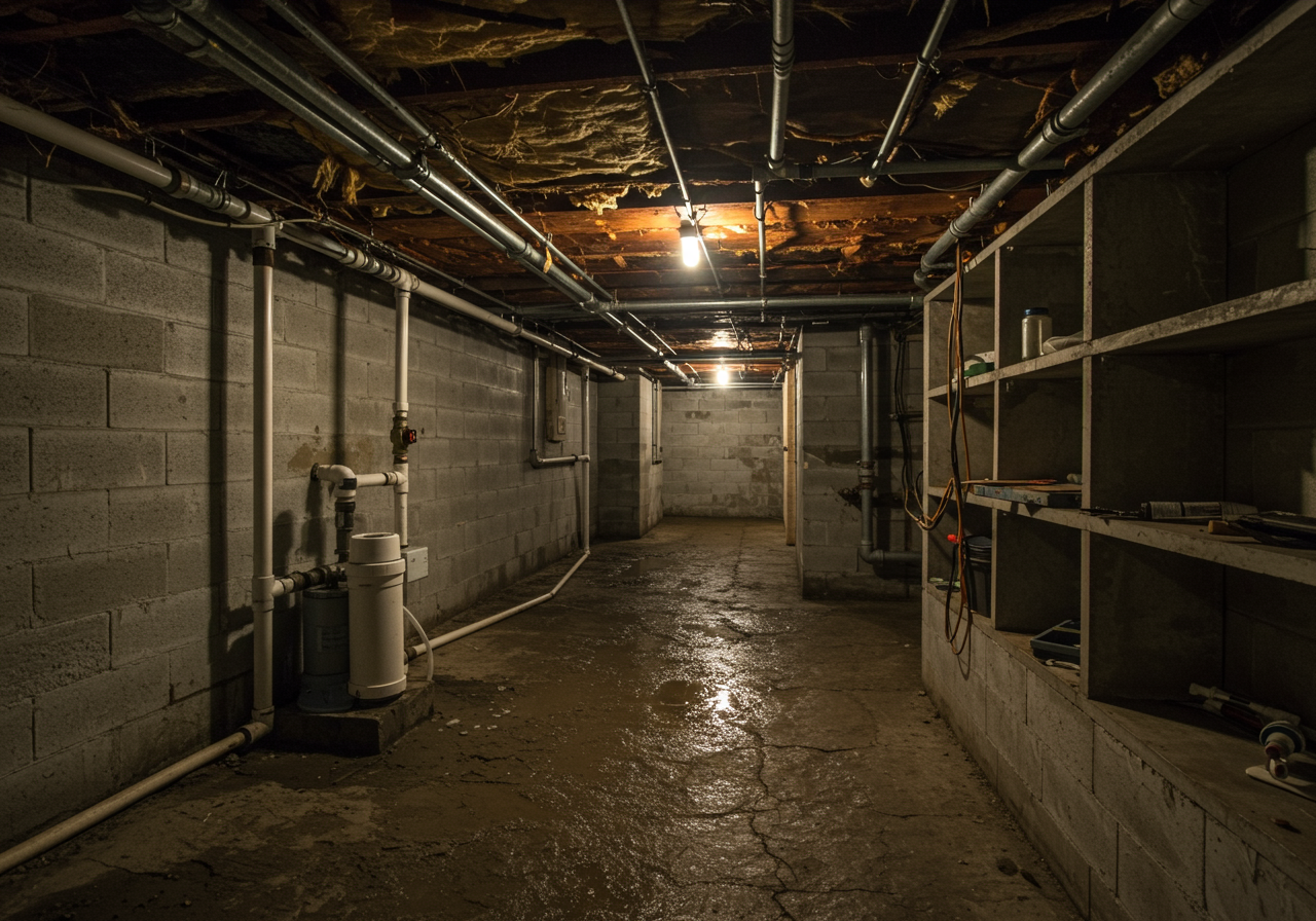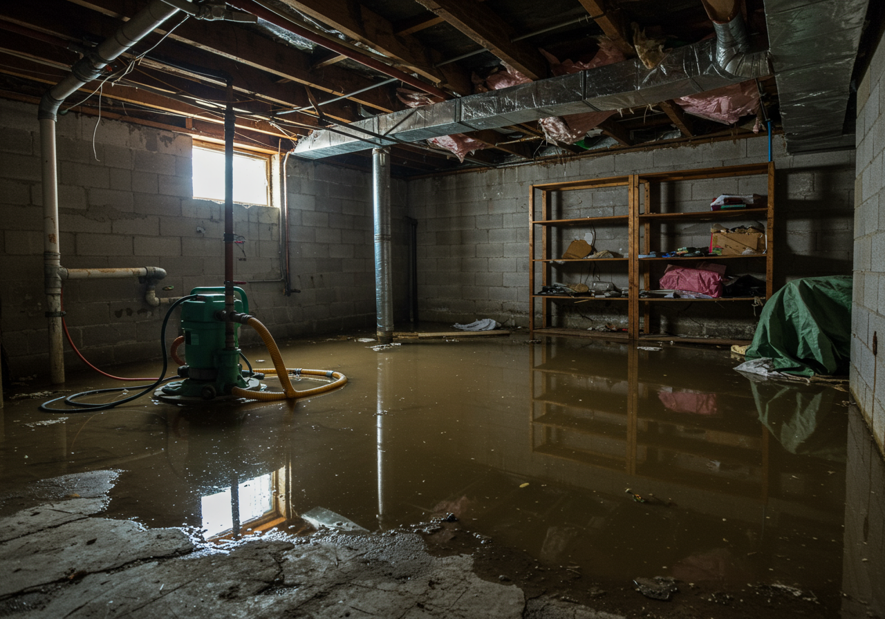 So yesterday I get a call from my property manager: The basement of one of the buildings is FLOODED with water! Like three feet deep! A tenant called because the heat wasn’t working in his unit. So the property manager went into the basement to inspect the furnace and discovered this!